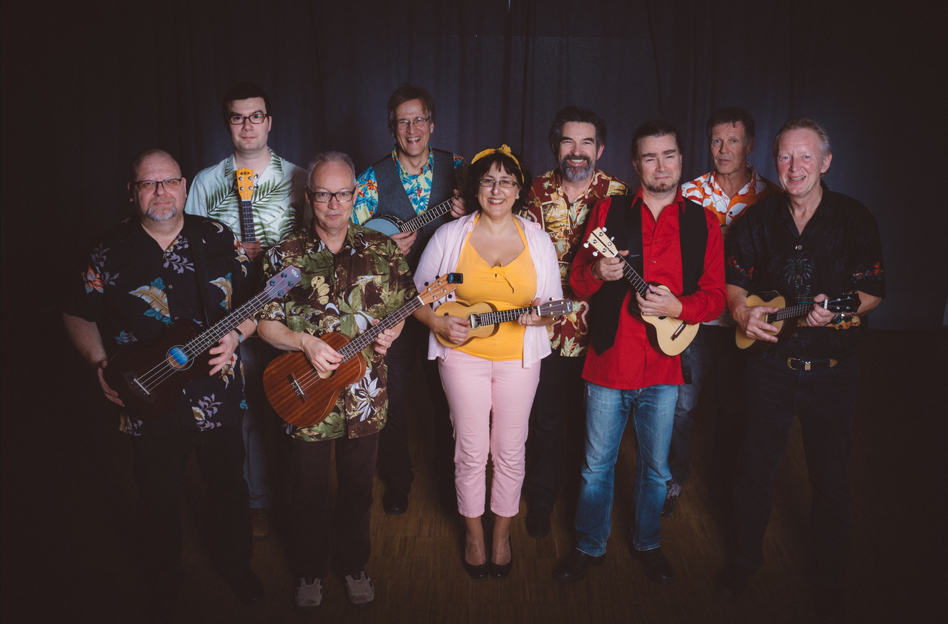 Just nu är vi omkring tio aktiva. Några av oss är nybörjare, andra har redan spelat ukulele och/eller gitarr ett antal år. Nästan alla av oss läser noter, men några spelar helst på gehör. Vissa av oss sjunger bra, medan andra koncentrerar sig på att spela. Förutom ukulele kan du höra oss spela trummor, saxofon, klockspel och några andra instrument.
